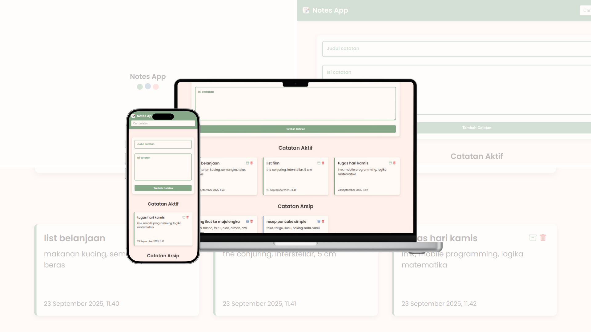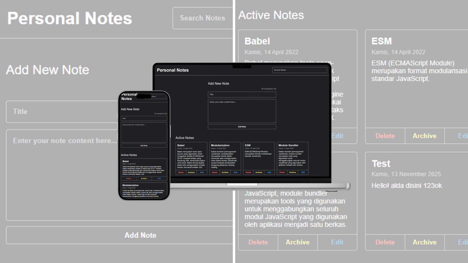 Web DevelopmentA web application built for creating, managing, and organizing notes. Users can add new notes, edit existing ones, delete, archive, and unarchive them. Each note displays a title, content, and creation date, with active and archived notes separated into distinct sections. The app supports live search filtering and provides real-time character limits for note titles. User actions trigger visual feedback using modal alerts to confirm success, deletion, or cancellation.