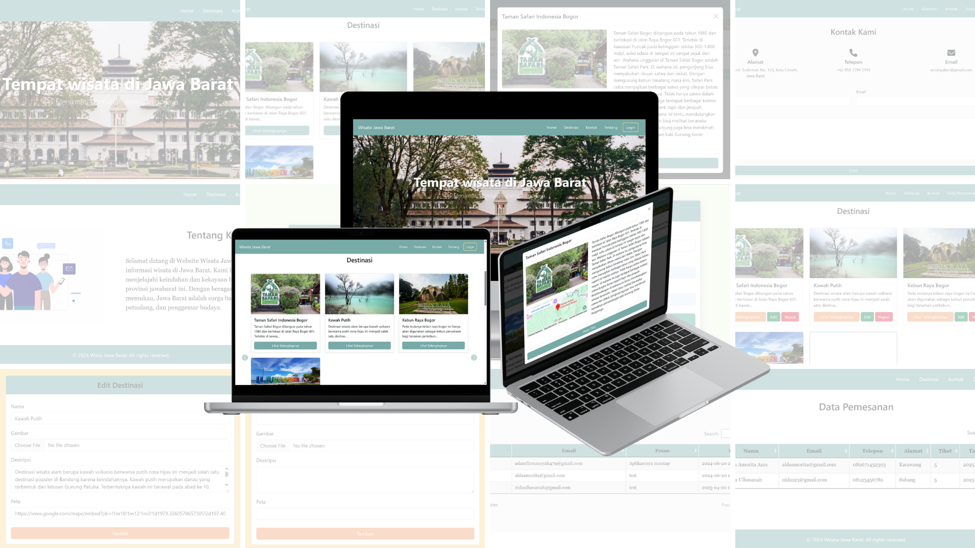 Web DevelopmentA web-based platform that showcases various tourist destinations in West Java. Users can browse destination galleries, read brief descriptions, view locations on a map, and book tickets directly through the booking form. Admins have special access to manage destination data and monitor ticket bookings.